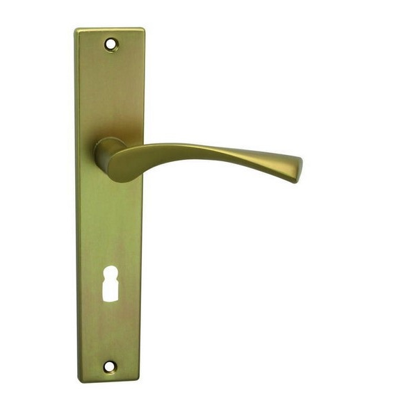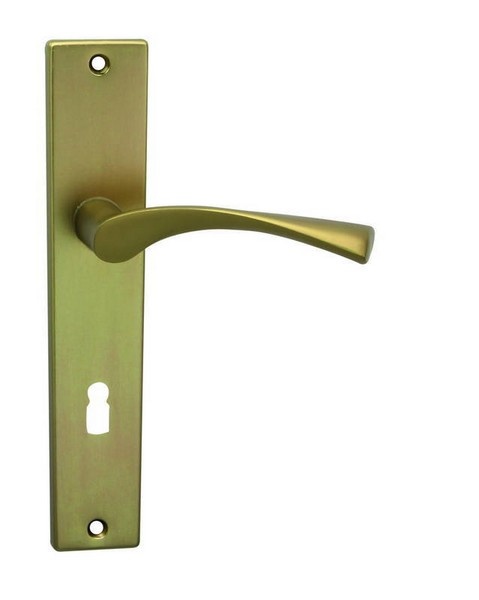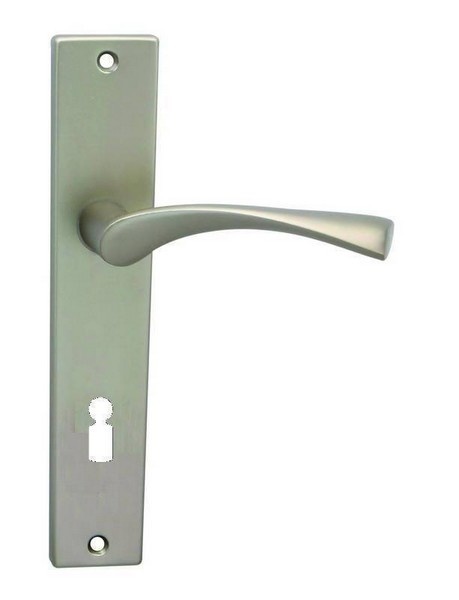 Štítové kování Cobra GIUSSY Povrch: F1(stříbrná elox),F4(bronzový elox),F9(elox nerez) Rozteč: 72 mm,90 mm Provedení:BB(otvor pro dózický klíč),PZ(otvor pro cylindrickou vložku - FAB),WC,PZ LI(klika levá/koule),PZ RE(klika pravá/koule), Výška štítu: 215 mm, Horní šířka štítu: 42 mm,Spodní šířka štítu: 38 mm, Délka kliky: 125 mm.