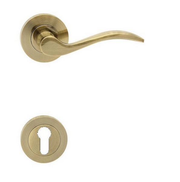 Rozetové kování Cobra KRISTINA-R Povrch: OFS(bronz česaný),OLV(mosaz leštěná) Provedení:BB(otvor pro dózický klíč),PZ(otvor pro cylindrickou vložku - FAB),WC,ROZMĚRY - šířka rozety: 52 mm, šířka kliky: 110 mm