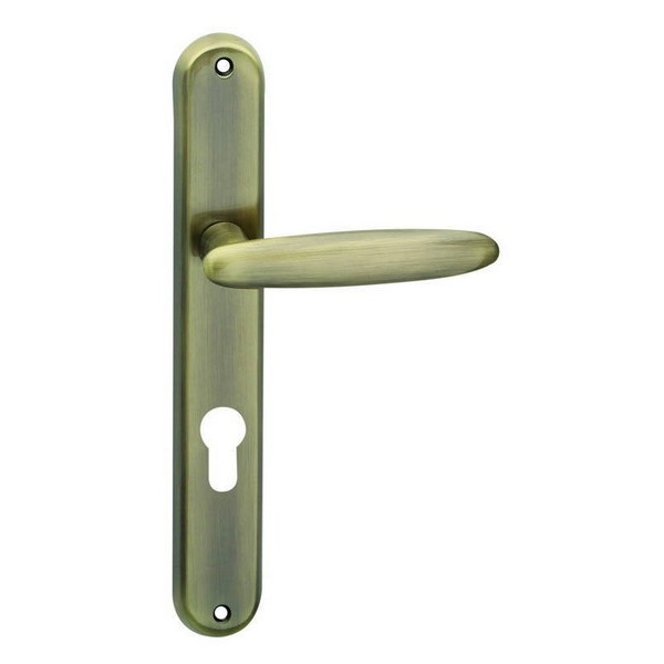Štítové kování Cobra GABRI Povrch: OFS (bronz česaný), Rozteč: 72 mm,90 mm,Provedení:BB(otvor pro dózický klíč),PZ(otvor pro cylindrickou vložku - FAB),WC,PZ LI(klika levá/koule),PZ RE(klika pravá/koule), Výška štítu: 240 mm, Šířka štítu: 40 mm, Délka kliky: 112 mm.